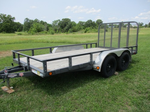 P/K 14’ Bumper Hitch Utility Trailer, Fold Down Ramps, Ex. Good